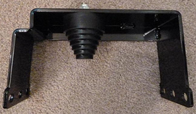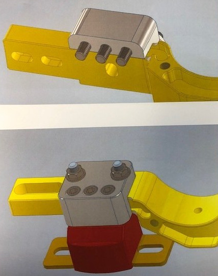 The grey part has been manufactured in house to adapt the new cross member so it lines up with the differentials bottom red Polly mount as apposed to suspending it from above with the same Polly mount. See the picture below where this part is required to interface from the red Polly mount to the gold cross member.