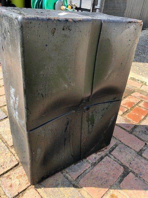 It was clear from the results that we needed a new air box as we were losing BHP when the car was hot under the bonnet, also the fuel system could not flow enough fuel for the new settings. This could be seen from the air fuel ration meters and the plug colours especially on plug no 6, the last in line for fuel. At 5.8 PSI we could only pump 58 litres per hour and we were, in 2019 using 60 litres per hour and we have since increased the main jets by 13%. So, I dropped the pressure to 4.5 PSI which is what it should be really be for the Webber carburettors, and the flow rate is now in excess of 80 Litres per hour with plenty of bypass going back to the tank. I also heard some pipework noises and on investigation I saw a nearly flattened fuel pipe, not sure yet if it is flow or return but it will be fixed next week, now to fix our 60 Litre tank that only holds 45 litres. When we built the car, we made the box for the tank the right size not allowing for the growth due to expansion from the fuel soak. This had led to the tank imploding somewhat and this needed to be addressed as we were often marginal on fuel and with the improvement we will definitely run out on some circuits. We have fitted an 80 litre tank so that now we can enter 60 minuet races as well as often in Europe when we race with other foreign clubs they have 1 hour races.
